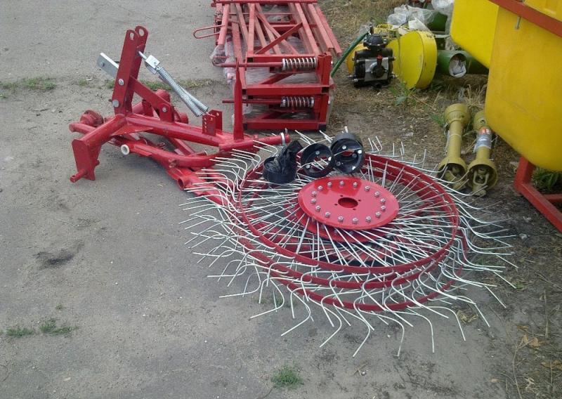 Страна-производитель: Украина Состояние: Новое Тип тракторных грабель: Грабли-ворошилки Цена договорная Грабли ворошилка для сена Украина: навесное устройство для агрегатирования с мотоблоками, мотоблочными адаптерами, мини-тракторами с целью сгребания и ворошения сена, кормовых и луговых трав после скоса для ускорения процесса высушивания. Состоит из четырех колесно-пальцевых дисков типа "Солнышко".